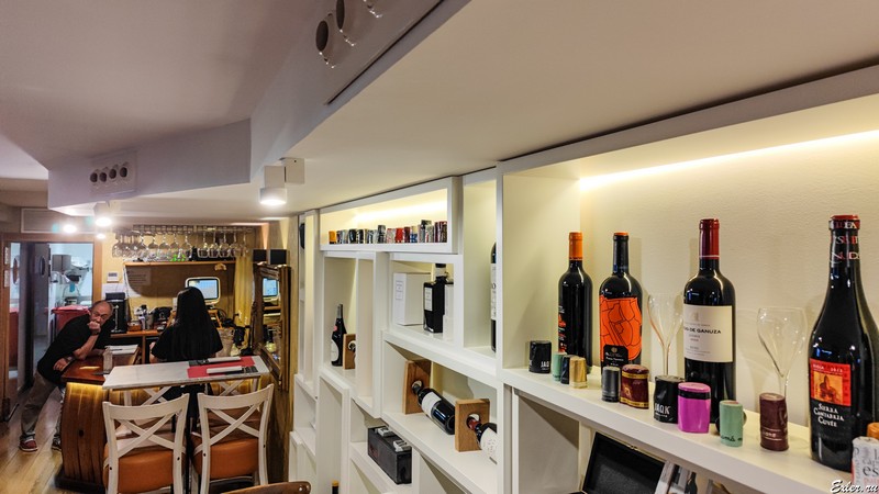 Причем в этом заведении рядом с баром за столиками сидели люди - выпивали и ели пинчос, - однако в глубине заведения был немаленький зал со столами с белыми скатертями, где можно было поесть типа как в ресторане, но зал был почти пустой. Я думаю, что где-то к 10 вечера он наполнится.