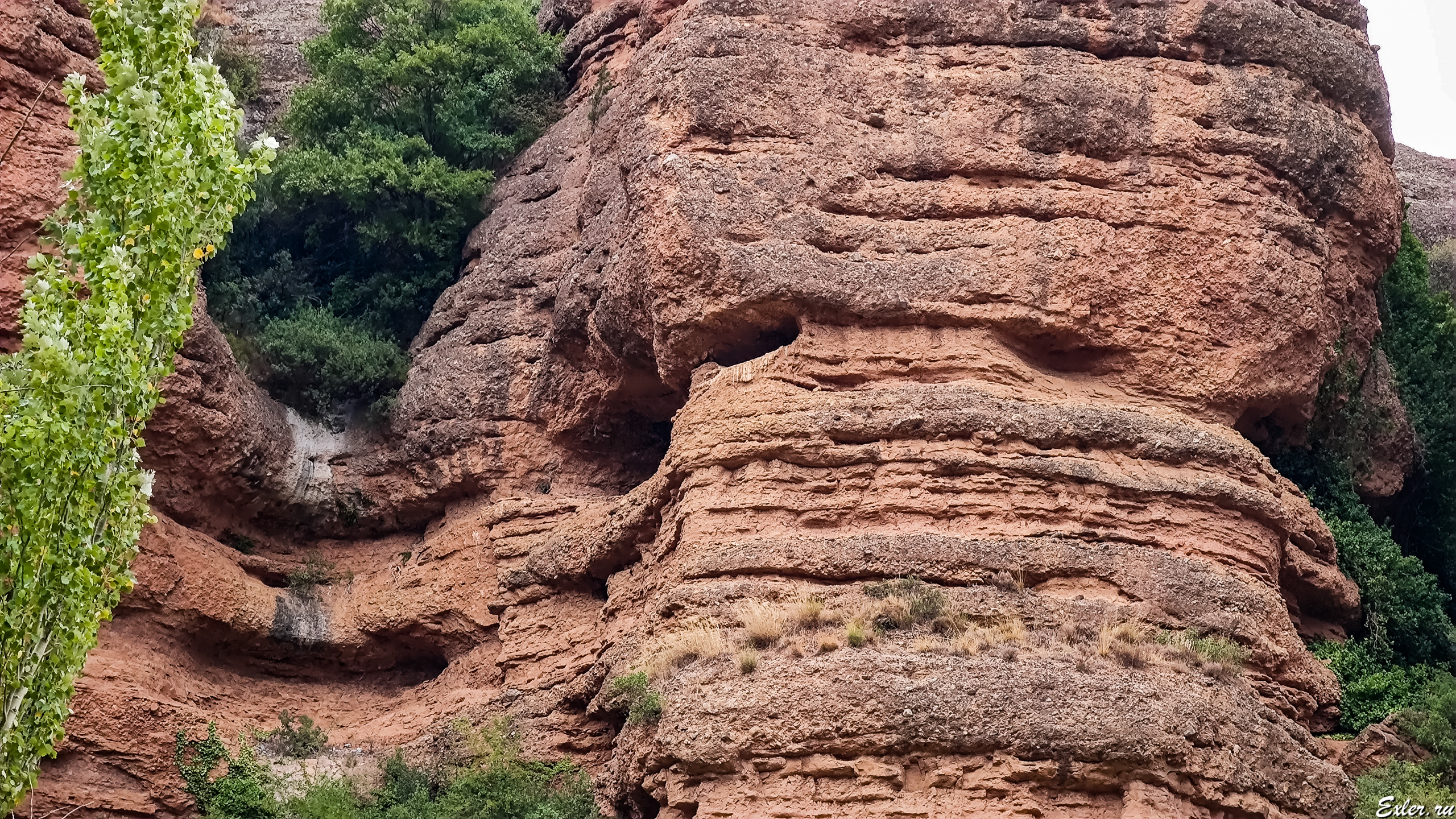 Вот эти отверстия в скале имеют искусственное происхождение. Эти ходы выдалбливали люди, которые в образовавшихся пещерках проводили время в молитвах и созерцании собственного пупка. То есть эти ходы использовались как эрмиты (эрмитажи, если по-французски), то есть кельи отшельников.