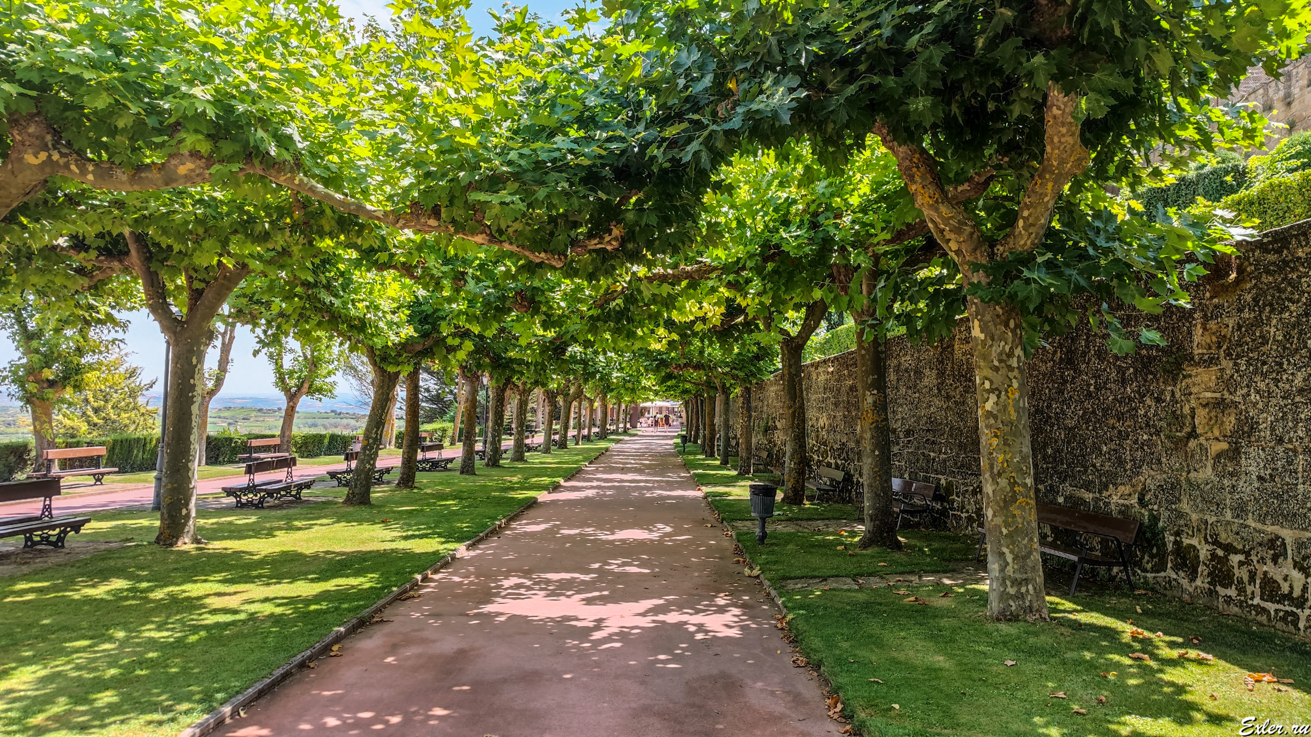 Вокруг всего города идет красивая тенистая аллея из платанов, чьи ветки сформированы особым образом, чтобы они образовывали живую арку.