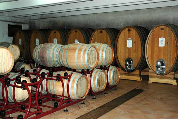 В результате по заводу нас водила начальница склада - молодая немка, которая очень неразборчиво говорила по-итальянски. О процессе создания вина она рассказывала на редкость схематично: снимают урожай, кидают в чаны, потом выдерживают в бочках, потом разливают. Об истории хозяйства я на порядок больше выяснил, зайдя на их сайт.