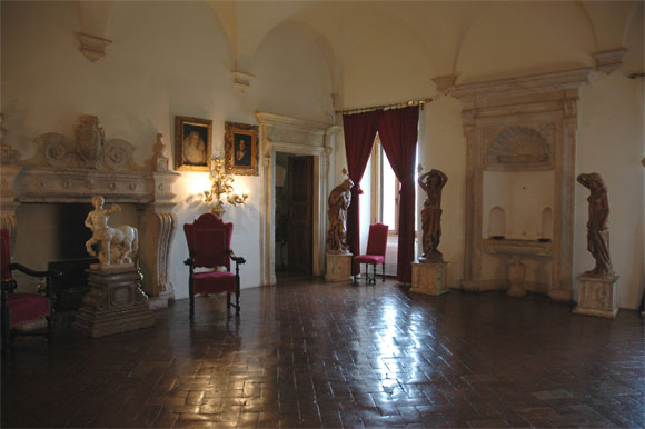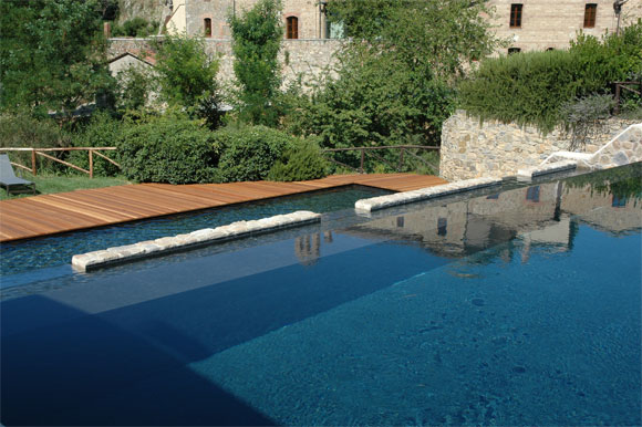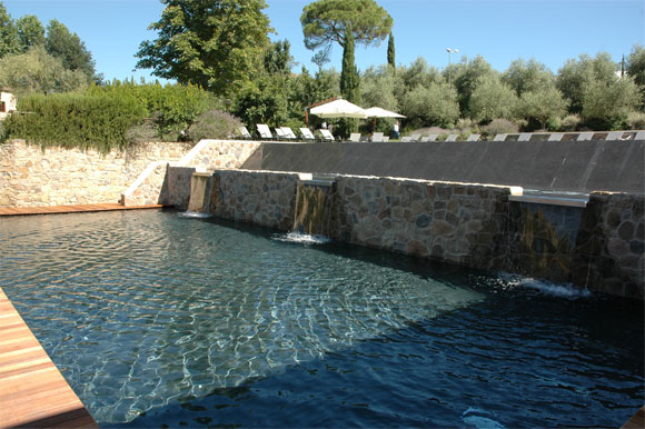 Во дворе - большой бассейн. Он устроен на месте пруда, где когда-то разводили карпов для папского стола. Вода в бассейне подогреваемая.