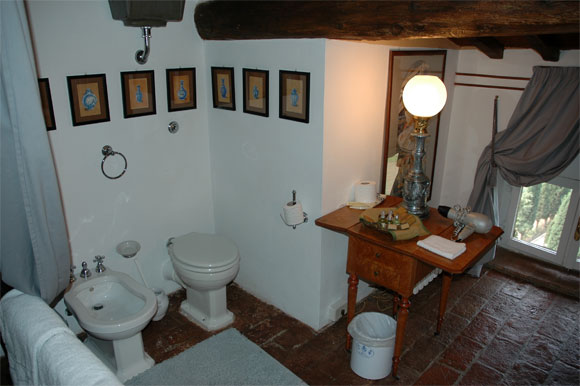 Дорога к этому отелю идет через очень живописную местность. (Впрочем, где в Тоскане не живописные места? Мы пытались такие обнаружить, но из этого ничего не получилось.) Сначала шоссе идет между холмами, склоны которых покрыты виноградниками и оливковыми рощами. Потом дорога сужается и начинает идти вверх по холму. Наш "Неистовый" Punto с тремя солидными мужиками на борту этот подъем посчитал форменным издевательством, однако старался изо всех сил, натужно рыча мотором и выдавая из-под колес целые клубы пыли, в которых томительно барахталась Audi Q7, непонятно как оказавшаяся за нами. Обогнать нас на такой дорожке у Audi не было никакой возможности, поэтому она покорно болталась позади и даже не выдавала возмущенные гудки, что бы давно сделал какой-нибудь наш соотечественник, окажись он на Audi позади Fiat Punto.