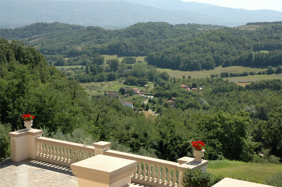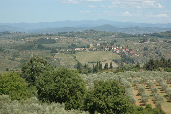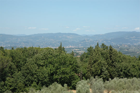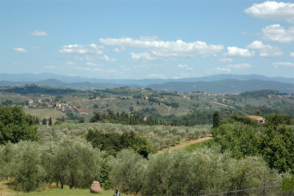 Прямо напротив террасы - роща с просекой, за которой вдали видна Флоренция и крыша высокого дома, который также принадлежал семейству Макиавелли. Здесь у них была просто дача, с террасы которой можно было любоваться флорентийским домом.