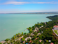 На полуострове Тихань я немного погонял квадрокоптер. Вот виды с высоты на Балатон и городок Тихань.