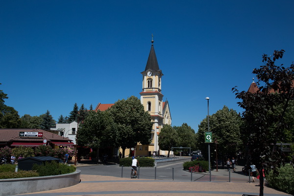 А вот и Балатонфюред. Местные жители по-свойски называют город просто Фюред. Крупный город, кардиологический курорт - здесь много клиник и санаториев.
