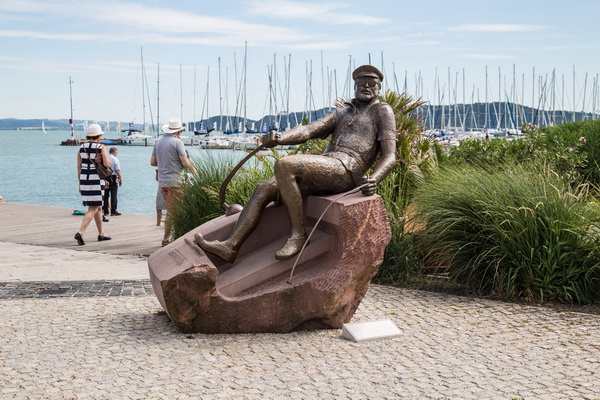 А этот памятник с торчащей рукой напоминает об одном трагическом событии. На Балатоне нередко дуют сильные ветры, также изредка случаются внезапные ураганные порывы ветра. И когда-то давно такой порыв ветра в хорошую солнечную погоду перевернул прогулочный кораблик, в результате чего много народу утонуло: мужчины были в костюмах, женщины - в пышных платьях с кринолинами, выплыть было нереально.
