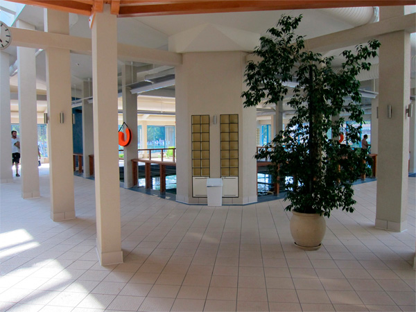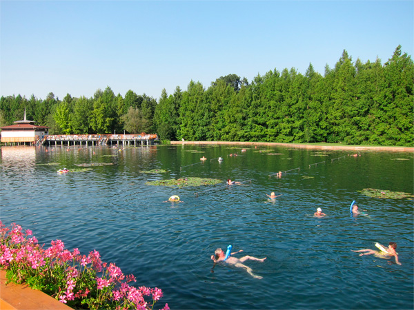 После этого вы можете или начать с крытых купален, или сразу отправляться к открытым купальням озера. Там еще удобно то, что в разных частях озера разная глубина (она указана): если вам неудобно барахтаться на глубине, то можно отправиться в раздел озера, где можно стоять на ногах.