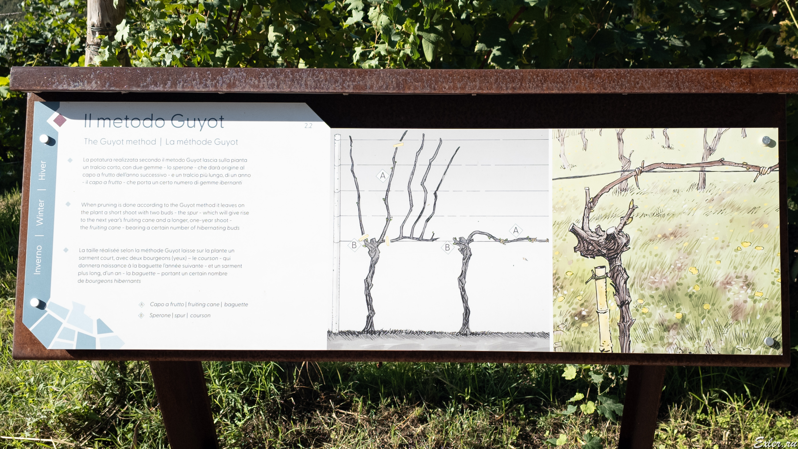 Интересно, что на разъяснительном плакате по обрезке винограда, показан метод Гюйо в один рукав, хотя симметричный метод в два рукава более распространен и безопасен, но видимо унификация промышленного производства требует однообразности.