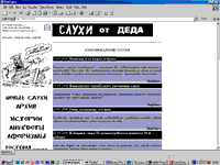 Довольно забавный сайт, который называется "Слухи от деда". Причем под дедом, как я понял, подразумевается любимый фольклорный и литературный герой всех окосевших и вислоухих персонажей - Мазай. Да-да, тот самый дед Мазай, который шуровал со своей байдаркой промеж островов, вылавливал зайцев и... убедившись, что и в этом зверьке нет батарейки "Энерджайзер", выкидывал их за борт. Но эти ужасы, разумеется, придумали уже позднее, а изначально дед Мазай - лучший друг всякого зайцеобразного зверья, он спасает их во время весеннего паводка, а потом из шкурок делает себе новое одеяло. Вот такой дед Мастдай получается, прости Господи.