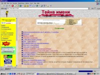 Мой старый друг и соратник по некоторым проектам Заглянем на довольно забавный сайт, который называется "Тайна имени". Дизайн, конечно, кошмарный (такие традиционные три фрейма, каждый из которых снабжен довольно диким фоном, заклинания добавить этот сайт в избранное или, что еще, по их мнению, лучше - сделать его своей домашней страничкой, а также долгие рассказы о том, каким образом каждый фрейм можно открыть на полную страницу, чтобы получить побольше информации на экране, но зато потерять навигацию по сайту... короче говоря, все, как обычно), но зато информация внутри - довольно забавная.
