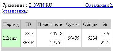 Видите какая разница? С Down.Ru у меня общих 6234 посетителя в месяц из 44918.