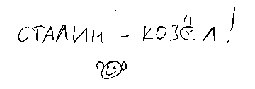Кстати, иду вчера по улице и вижу на заборе следующую надпись "Сталин - козел!":