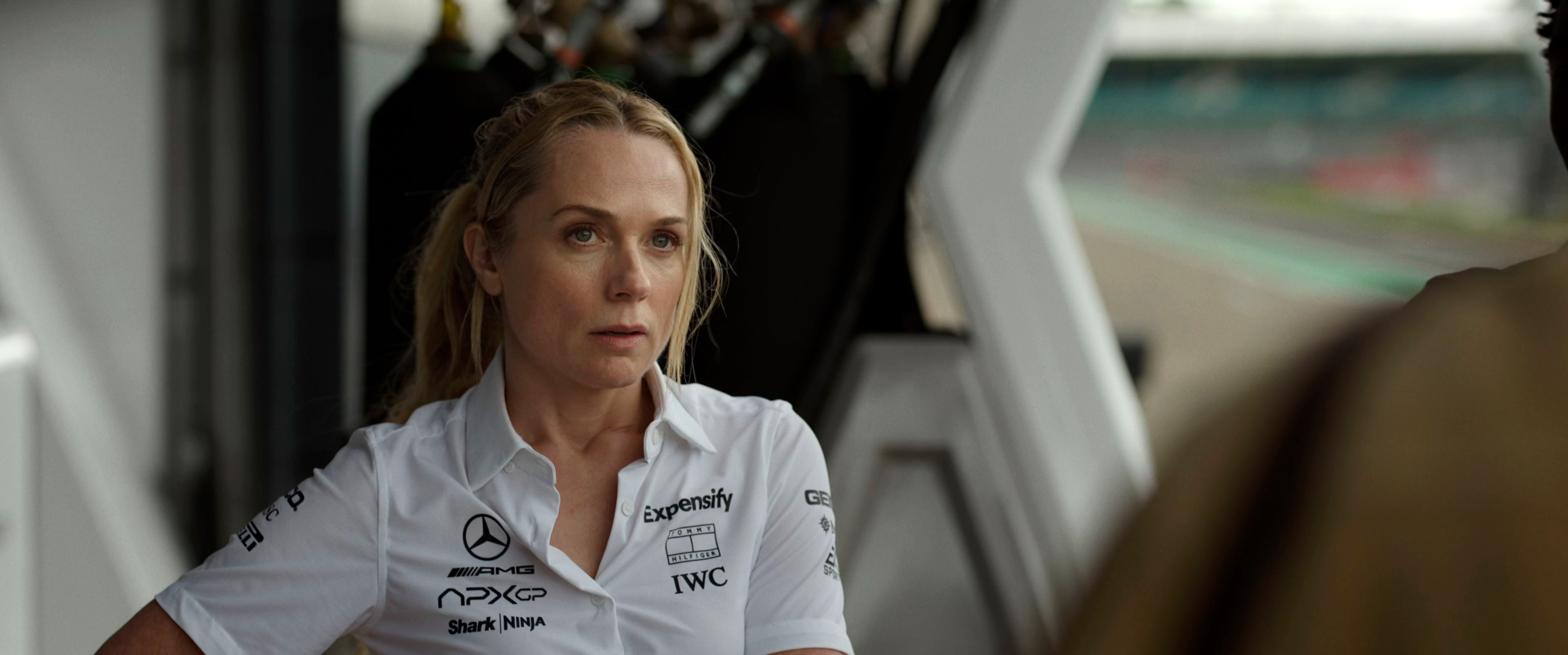 Классная Керри Кондон (она играла сестру Подрика в "Банши Инишерина") сыграла главного конструктора команды Кейт МакКенну. Она симпатичная, обаятельная, настоящий профессионал своего дела, к тому же очень удачно не замужем, так что Косински обязательно забабахает романтическую линию с Кейт и Сонни: конечно, миловидная блондинка, да еще и главный конструктор, первоначально будет делать вид, что она не такая, она суровая и неприступная, но кто устоит против улыбки Брэда Питта, кто?