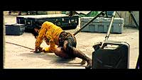 Однако, как я уже говорил, операторское происхождение режиссера хотя бы в одной составляющей картины дало свои положительные плоды. В фильме совершенно роскошные трюки. На удивление классные. Этот Лето - попрыгунчик из "Ямакаси" (я имею в виду саму акробатическую труппу, а не фильм) - выделывает что-то невероятное! Причем снимается это все очень качественно и реалистично, так что просто дух захватывает, когда смотришь на все его кульбиты. Улепетывание Лето от подручных Таха в начале фильма - просто что-то невероятное!