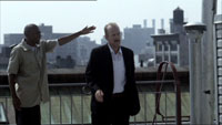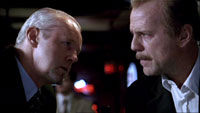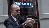 Но на диске есть подарок всем пострадавшим в результате просмотра: альтернативная концовка! Значит, тот же темный подвал с лифтом под зданием суда (хы 😄), герой и злодей поговорили, но негодяй в рацию командует не "Убери его", а наоборот, "отставить насилие"! Да-да, герой Морза прозрел, проникся, просветлился. Но напарник его по рации не слышит, и когда Уиллис выходит из лифта, пытается его немного убить.