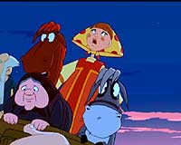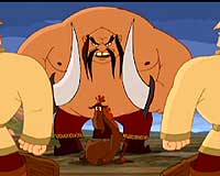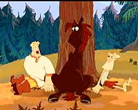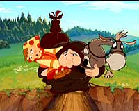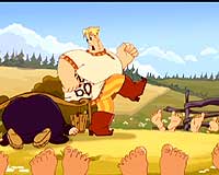 Посмотреть его, конечно, можно. Даже нужно – просто чтобы понять, в каком направлении двигаются отечественные мультипликаторы и что нас ждёт в дальнейшем. (Ведь повод для определённого оптимизма всё-таки есть.) Причём когда смотришь – ну, вроде бы, всё даже и ничего. Прикольно. Разве что конь этот, разве что пара достаточно дурацких эпизодов с кувырками и психоделической эйфорией среди берёзок, разве что диалоги эти... Но есть и находки. Эпизод с камнем, игровой дуб и братки с дубинками, ну и князь киевский. Вот они – просто класс. Значит, всё-таки могут что-то придумать и могут реализовать. Жалко только, что эпизоды эти – как редкие жемчужины в копне сена. И чтобы их раскопать, нужно копнуть 72 минуты.