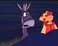 В-третьих, за Любавой побежала её бабушка – ну, чтобы Тихону было не скучно. И, в-четвертых, сопровождает Любаву её верный спутник – ослик Моисей, который, как это свойственно всем осликам его племени, всё время вежливо молчит, но зато делает дело.