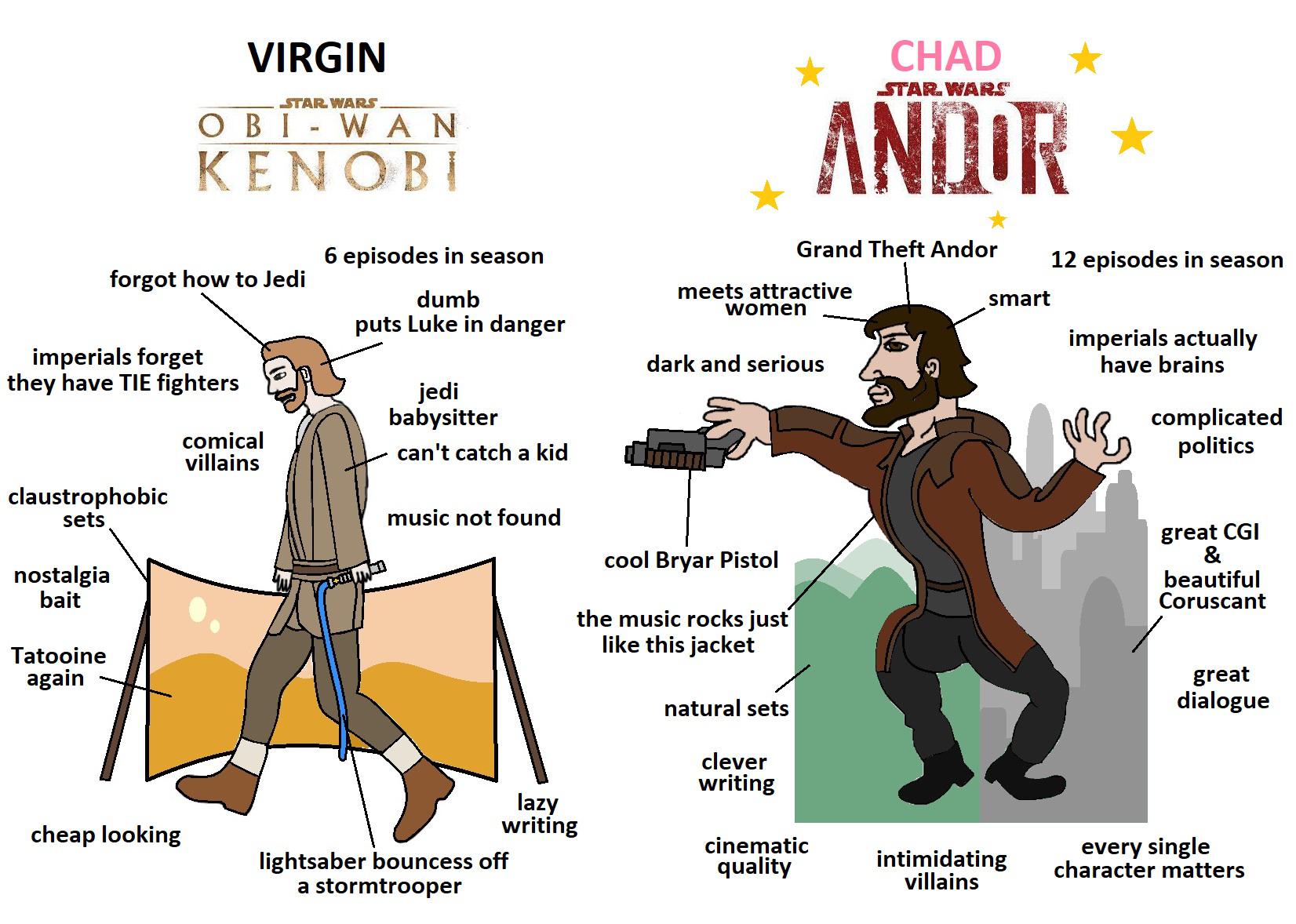 Что до этого сериала, то очевидно, что образ Андора это явный повтор Хана Соло.