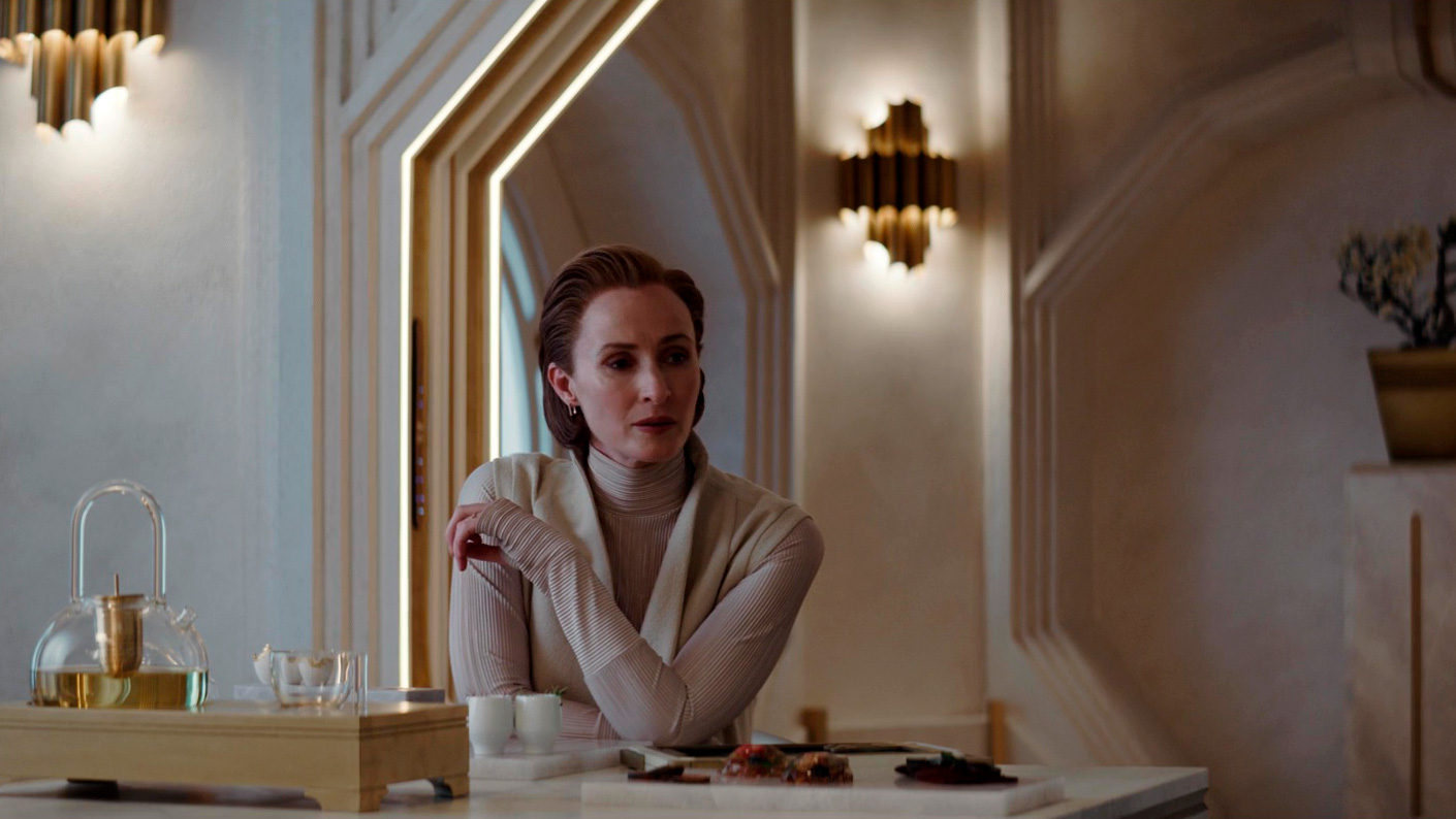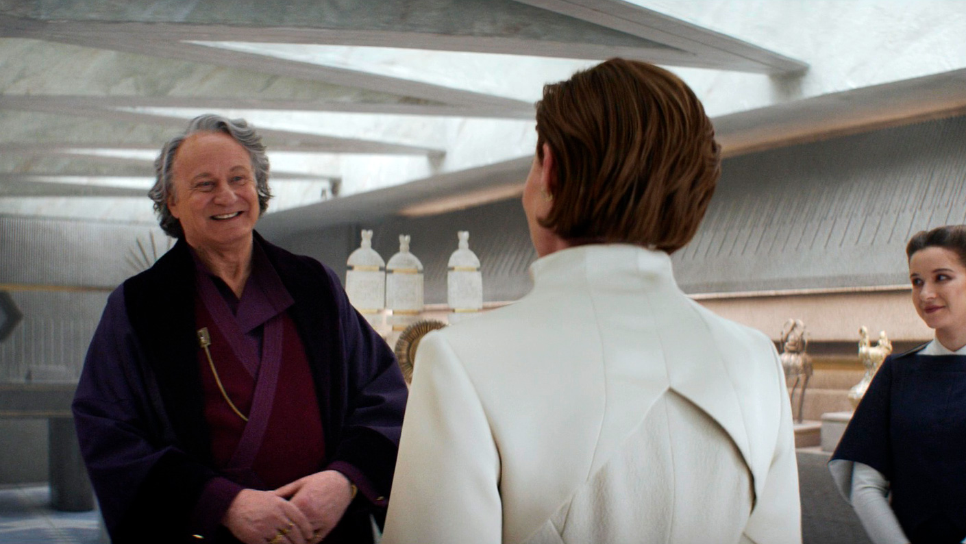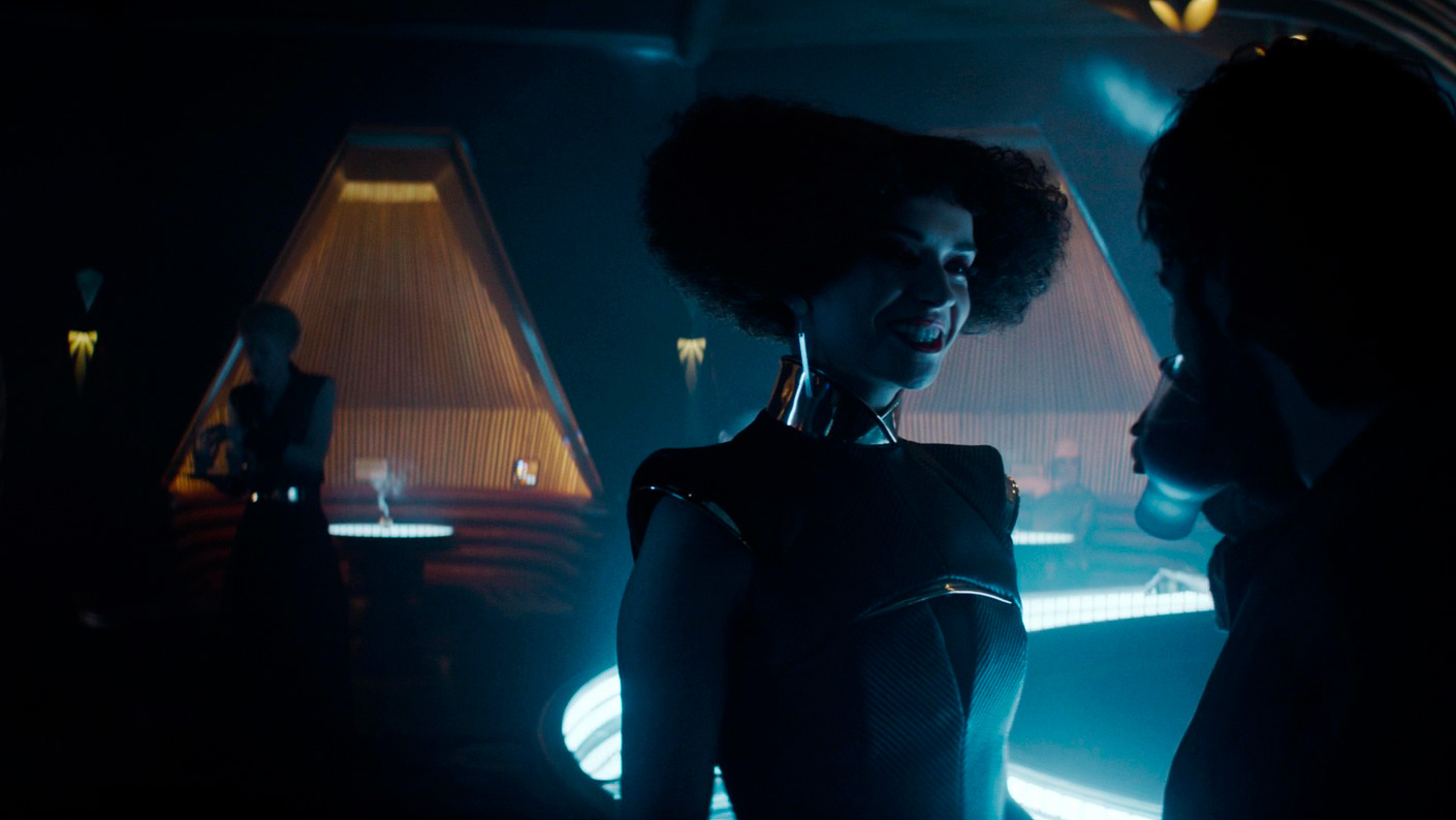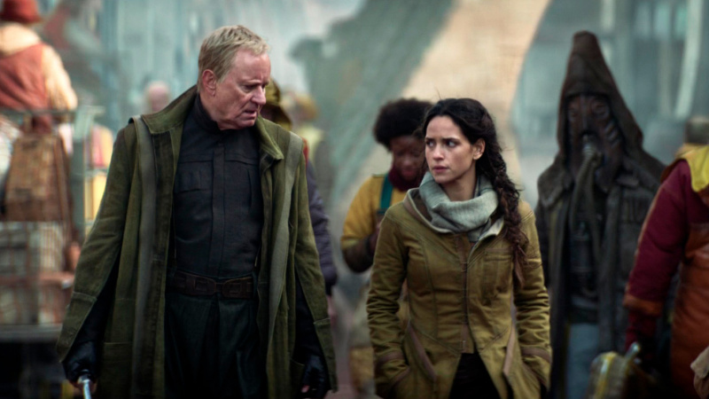 Одни моменты в постановке сцен на Фериксе и Морлане Один напоминают классический "Бегущий по лезвию бритвы" - атмосферой и неоном, - другие просто поражают масштабом и качеством декорацией, я бы весь этот сериал не отказался посмотреть на большом экране: у меня с новой "Дюной" была похожая история - я этот фильм начал смотреть дома на экране здоровенного телевизора, но понял, что нужно отправляться в кинотеатр и смотреть его на большом экране, что я и сделал. С сериалом такой вариант, к сожалению, не пройдет, однако по визуальному уровню постановки это прямо-таки вполне тянет на современный блокбастер: сервис Disney+, который этот сериал заказал, явно вложил сюда очень большие деньги, и это хорошо видно.
