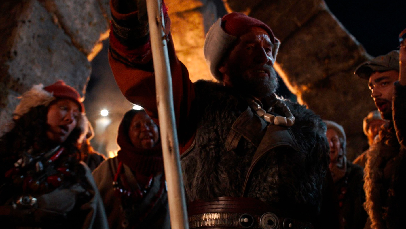 Поставлено это реально здорово. Причем, в отличие от несколько других постановок кинофраншизы - "Мандалорца", "Книги Бобы Фетта" и "Оби-Вана Кеноби" - здесь не использовалась технология StageCraft для создания компьютерных ландшафтов и локаций, и почти все, что мы видим в сериале - масштабные декорации и всякие реальные места, вроде горы в окрестностях Питлохри в Шотландии, и Диего Луна в интервью жаловался, что им какое-то время приходилось часами подниматься на гору, чтобы снять несколько небольших эпизодов.