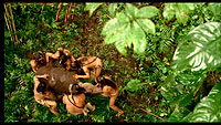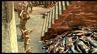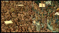 P. P. S. И даже в "Апокалипсисе" был обнаружен тот самый Уолли (Charlie во французском или Waldo в американском варианте). Уж и не знаю, кто именно так пошутил - сам Гибсон или его оператор и монтажер, но Уолли четко обнаруживается, если прокручивать эпизоды покадрово, вот на этой точке (воспроизведение на компьютере в PowerDVD 6): 01:27:44. Я его обнаружил случайно. Делал скриншоты для рецензии и прокручивал в замедленной съемке некоторые эпизоды. В сцене на поле с трупами вдруг мелькнуло какое-то яркое пятно. Прокрутил покадрово - и обалдел! Когда смотришь на скорости - внимания не обращаешь вообще, потому что это только один кадр. Но при покадровом воспроизведении он виден во всей красе. Вот он, Уолли, который все-таки был обнаружен: