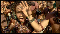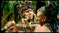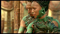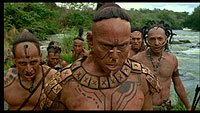 Ну и еще одна претензия, которая часто звучит, касается насилия, жестокости и натурализма "Апокалипсиса". Гибсона упрекают в том, что он, дескать, любуется этими кровавостями и чуть ли не наслаждается ими. Тоже, на мой взгляд, странное замечание. Гибсон старался, во-первых, воссоздать быт тех времен, а во-вторых, показать весь ужас индейцев, попавших на человеческие жертвоприношения в качестве жертв.