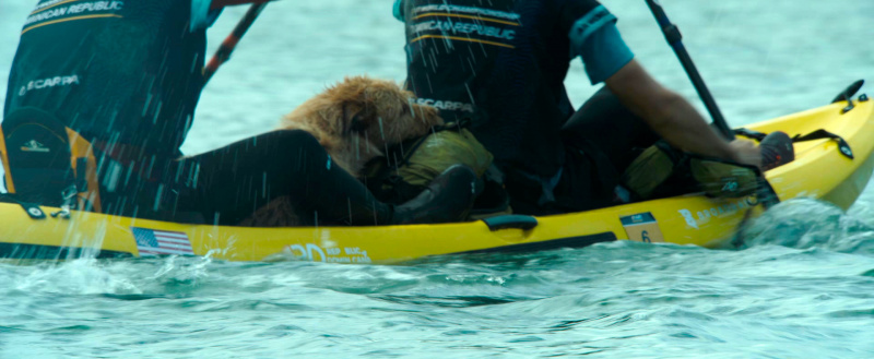 После этого пес стал следовать за командой, и в итоге прошел с ними весь маршрут. Насколько он помогал им в прохождении маршрута - доподлинно неизвестно, но они стали считать его членом команды: подкармливали, хотя еды было совсем в обрез, вытаскивали из грязи, когда Артур, как они его назвали, застревал там, а когда им пришлось отправляться в 14-часовой переход на каяках по воде уже к самому финишу, они не смогли оставить Артура на берегу и взяли его с собой в лодку.