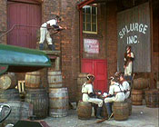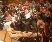 Совершенно великолепен Дэнди Дэн - настоящий богатей с цветочком в петлице, мажордомом, великосветской супругой и роскошными костюмами. Надо видеть, как он общается со своими громилами - это шикарная пародия на гангстерские боевики. А уж его фраза перед решающим штурмом кабака Толстячка Сэма: "Помните, ребята! Сейчас вы делаете историю"...