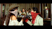 В какой-то момент проклюнулся намек на нежные взаимоотношения между Сарой и Марией - мы с котом Бубликом снова оживились. Они так мило купались в водопаде (одетые, не волнуйтесь), так мило легли спать у костра, и Мария так мило положила свою ножку на Сару - мы думали, что вот сейчас фильм наконец-то войдет в ровную колею милой романтической любви между двумя ковбойками - это сейчас модно. И тоже ни черта! Легкий лесбийский намек в дальнейшем остался совершенно невостребованным! А когда дальше Мария стала вдруг из себя изображать двадцатилетнюю девственницу, не умеющую целоваться, а весь пыл тетки стали тратить на детектива, страдающего падучей, - мы с Бубликом поняли, что нас жестоко обманули!