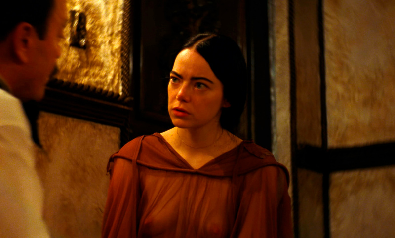 Безумно сложная игра Эммы Стоун. Практически невозможное исполнение женщины-младенца. Интеллектуальный рост героини она смогла изобразить не только лицом, но телом, позами, движениями.