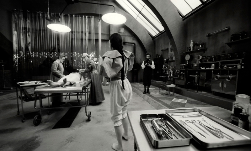 Йоргос в "Бедных-несчастных" создает очень вычурный и совершенно фантасмагорический мир викторианской эпохи, который с чисто визуальной точки зрения выглядит совершенно завораживающе. Все это снято в основном на студии Origo Studios в Будапеште в искусственных декорациях, а фон для многих сцен - Лондон, путешествие на корабле, Лиссабон, Париж - создавался с помощью компьютерной графики, потому что этот мир - эдакий стимпанк с соответствующими стимпанковскими механизмами и причудливыми строениями, а по двору доктора Годвина (обычно его зовут просто God, то есть Бог) бегают животные, как бы сшитые из разных животных видов - эдакие уродцы из "Острова доктора Моро": всякие собакогуси, свинокурицы и так далее.