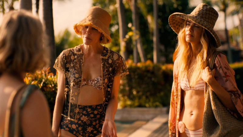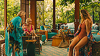Троица старых подруг ожидаемо будет делиться на парочки и перемывать кости третьей подруге, так что ни одна костяшка там не останется не отмытой добела. К тому же по отелю шляется такой внимательный и такой фигуристый "рюсськи парен" Валентин, и Жаклин будет уговаривать разведенку Лори с ним трахнуться, но, впрочем, в какой-то момент решит трахнуться с ним сама, и это тоже было вполне ожидаемо.