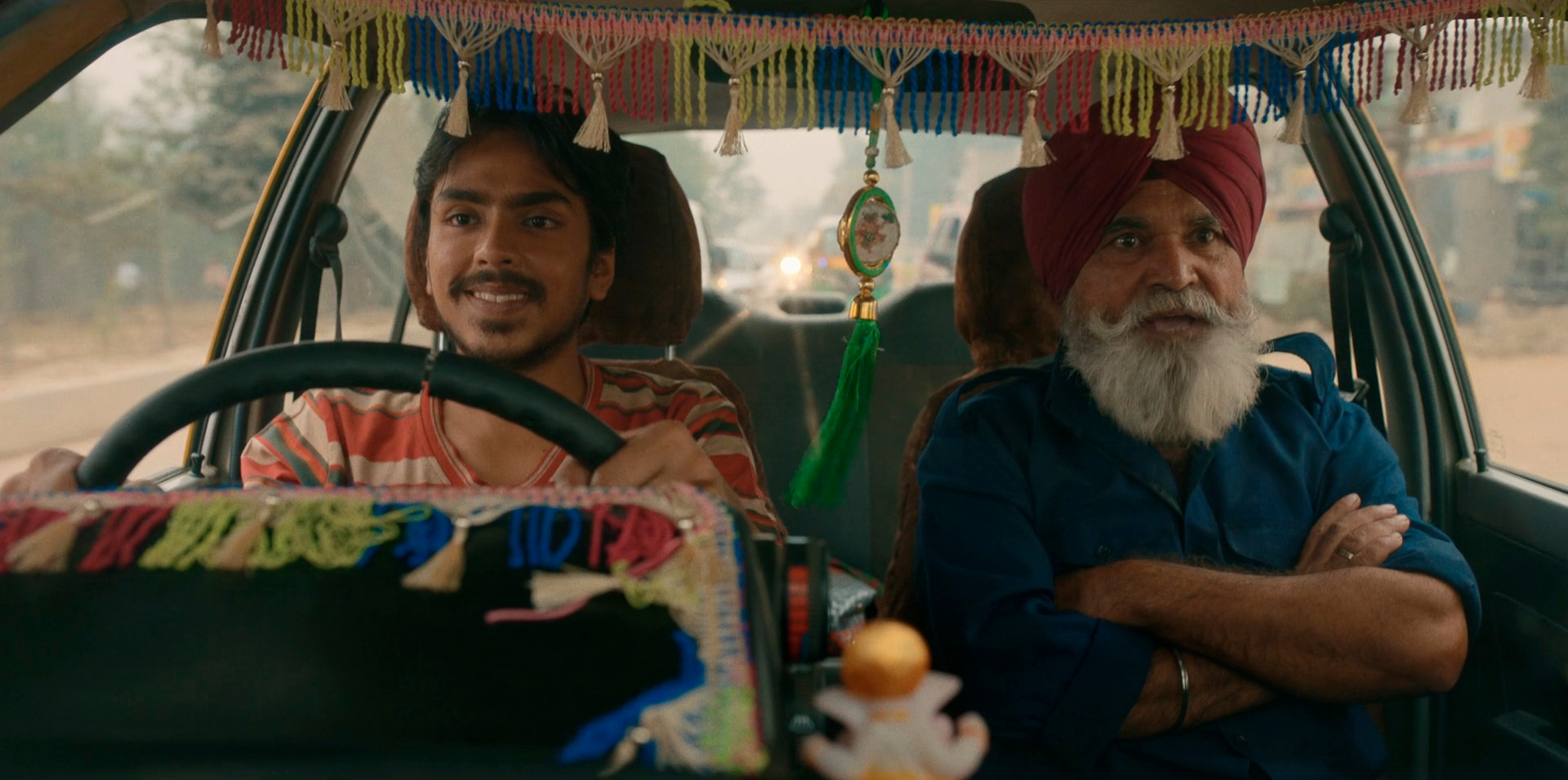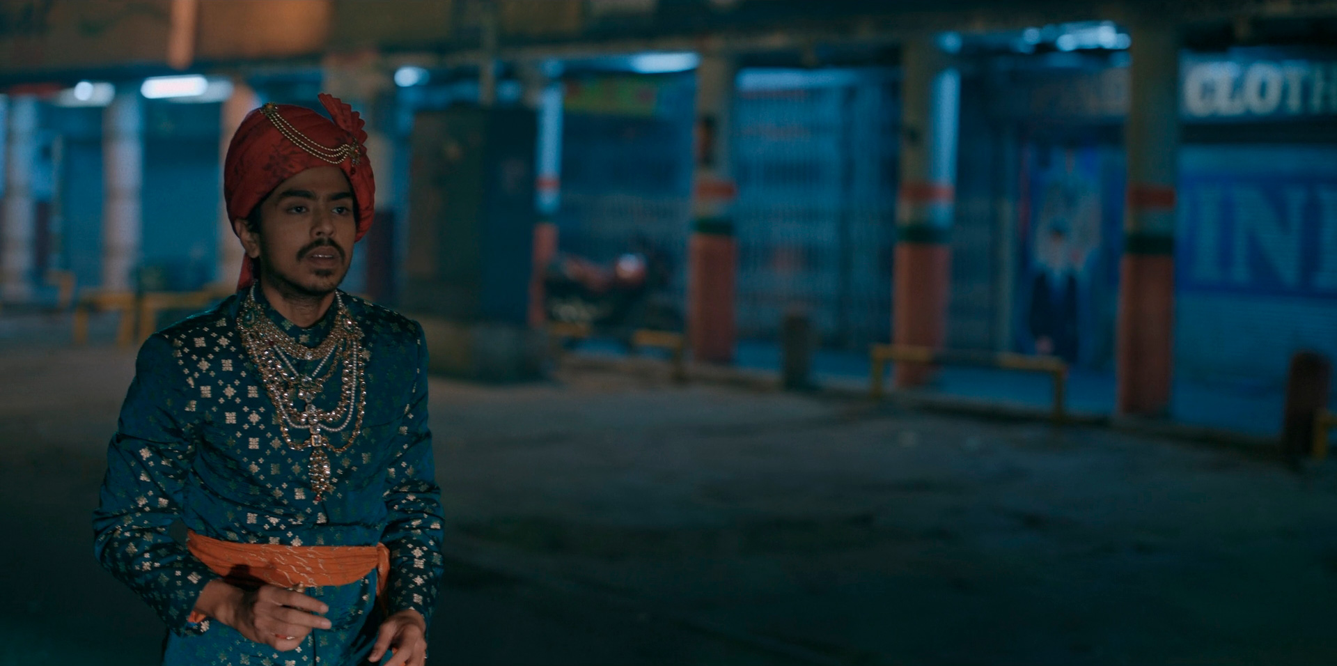 В начале картины показывается некое автомобильное происшествие: за рулем сидит пьяная женщина, рядом с ней - ее муж, а на заднем сиденье находится герой фильма Балрам Халвай (Адарш Гурав), одетый каким-то махараджей.
