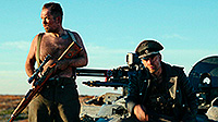 От "Рэмбо" - одинокий герой, противостоящий целой куче врагов, от "Дороги ярости" - линейное поступательное движение группы вооруженных людей, охотящихся за целью, от "Бесславных ублюдков" - разделение картины на условные части со своими названиями (я могу ошибаться, но вроде бы тут даже шрифт используется очень похожий на тот, который использовал Квентин), ну и при этом фильм снят в очень жестком брутальном и черноюморном стиле.