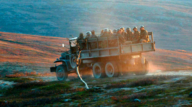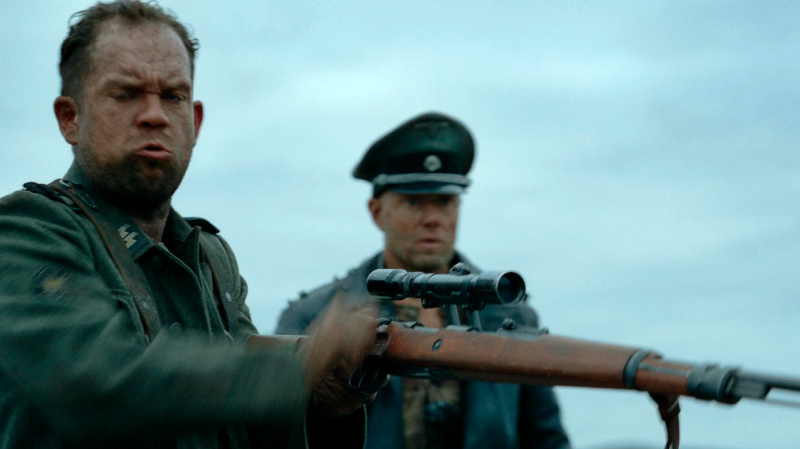 Очень порадовал хороший норвежский актер Аксель Хенни в роли офицера СС Бруно, начальника боевой группы нацистов. Его Бруно был необыкновенно колоритен, ну и нужно отметить определенную целеустремленность данного персонажа в достижении цели. А что Бруно почему-то говорил на английском, а не на немецком, - ну так все немцы в фильме говорили на английском: вероятно, они этот язык учили в школе, а так как Германия на тот момент войну уже очевидно полностью проиграла, немцам явно было нужно практиковаться в английском, чтобы попытаться затеряться где-нибудь в скандинавских странах.