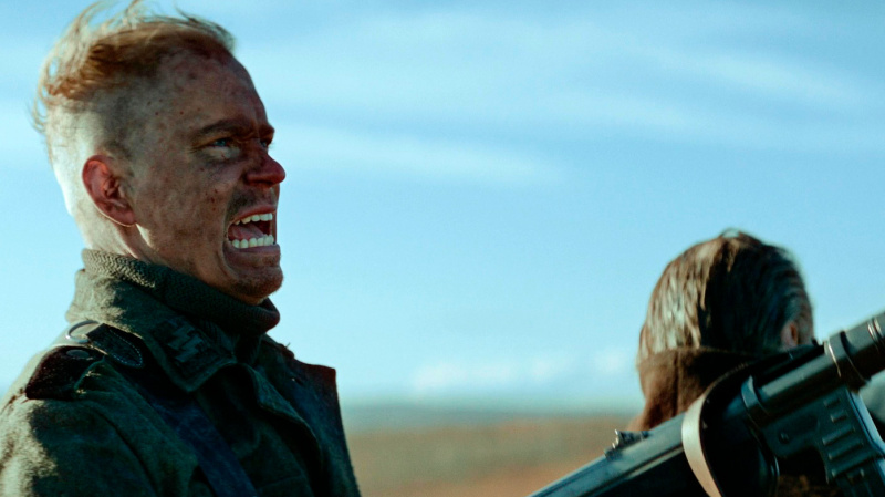 И очень хорош правая рука Бруно снайпер Вольф, которого сыграл Джек Дулан. Этот актер играл какую-то маленькую роль в "Пацанах", где я его совершенно не запомнил, а тут персонаж получился очень запоминающийся. Бруно с Вольфом - прямо-таки классная и эффектная парочка нацистских отморозков!