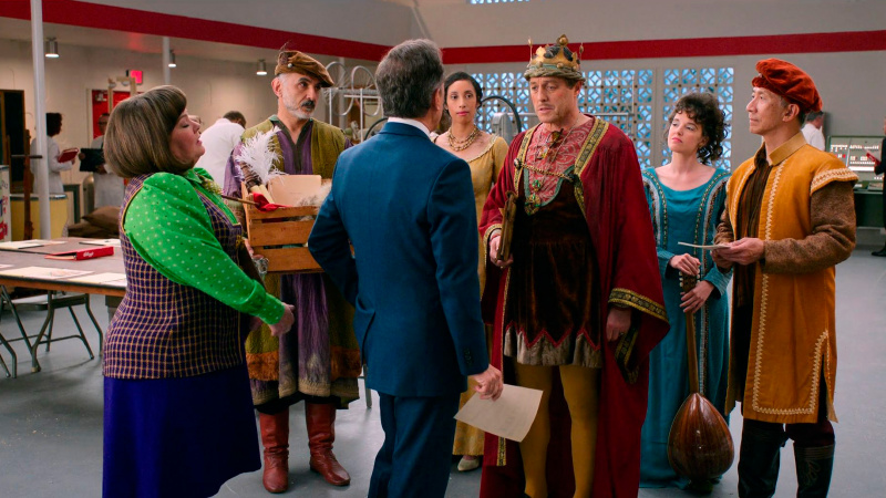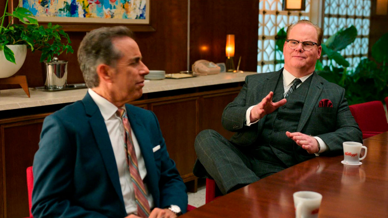 Сайнфелд также сюда запихнул Джона Хэмма и Джона Слэттери, которые в списке персонажей указаны просто как "рекламщики", однако явно косплеят Дона Дрейпера и Роджера Стерлинга из "Безумцев".