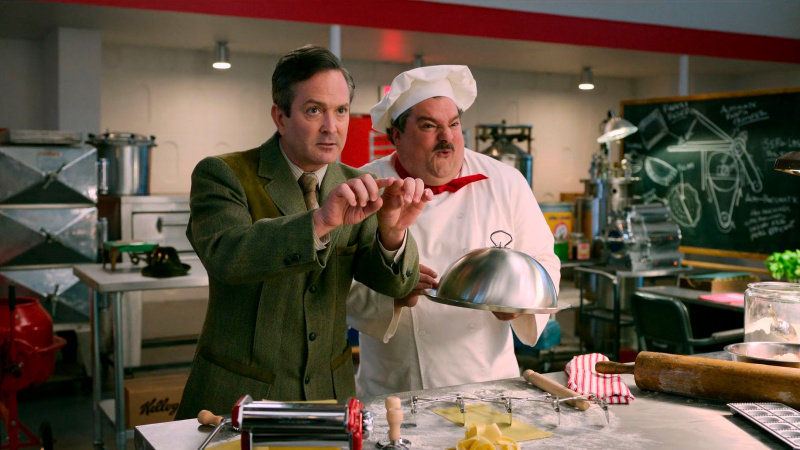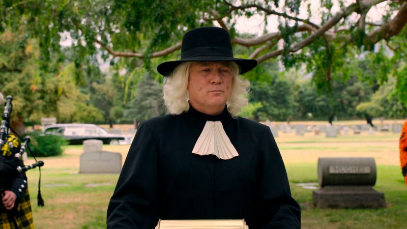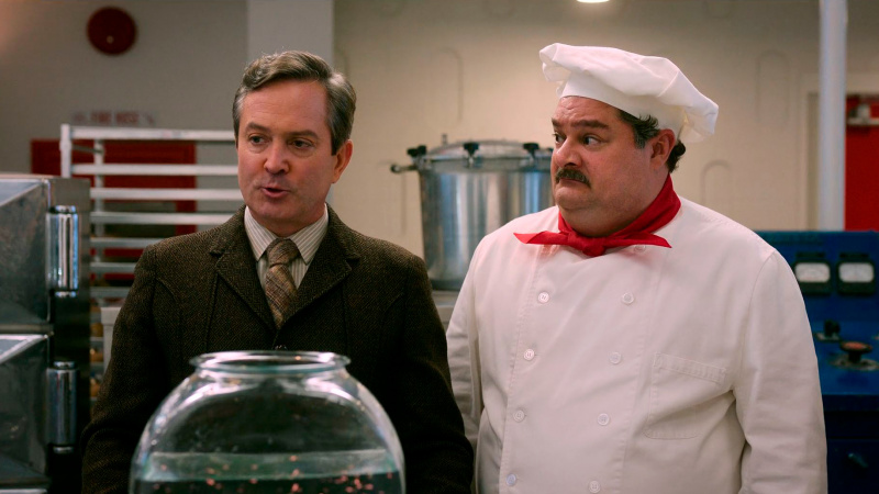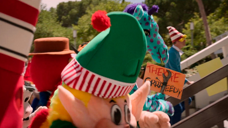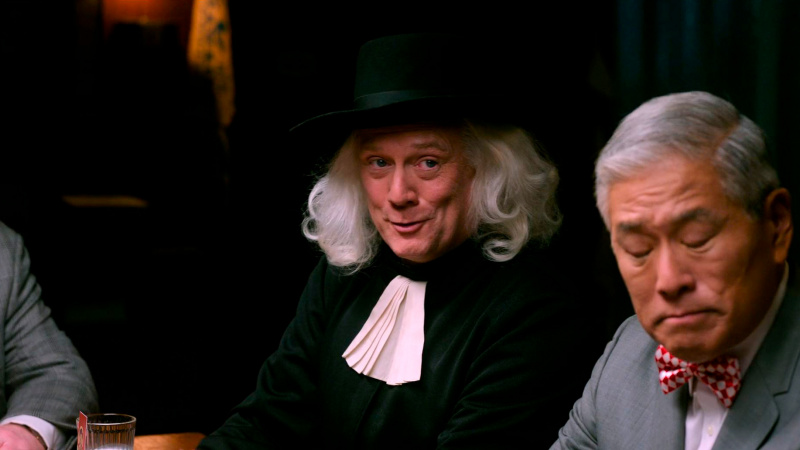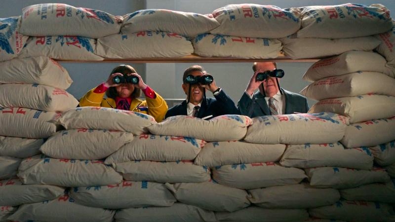 Но здесь вообще немало отсылок ко всяким другим фильмам и событиям - "Крестный отец", высадка на Луне, штурм Капитолия и так далее: одни из них хорошо работают, другие - узнаваемы, но работают так себе, из серии - "ну да, мы поняли, что вы спародировали "Крестного отца" - и чо?".