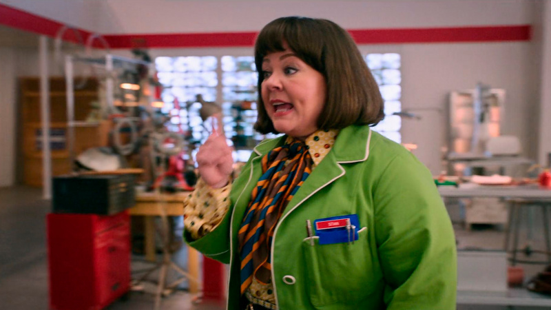 Мелисса МакКарти тут достаточно типовая, но забавно типовая: она отвечает за такое ершистое и своенравное творческое начало, а также поражает окружающих своей манерой одеваться - весьма, замечу, симпатичной и яркой манерой.
