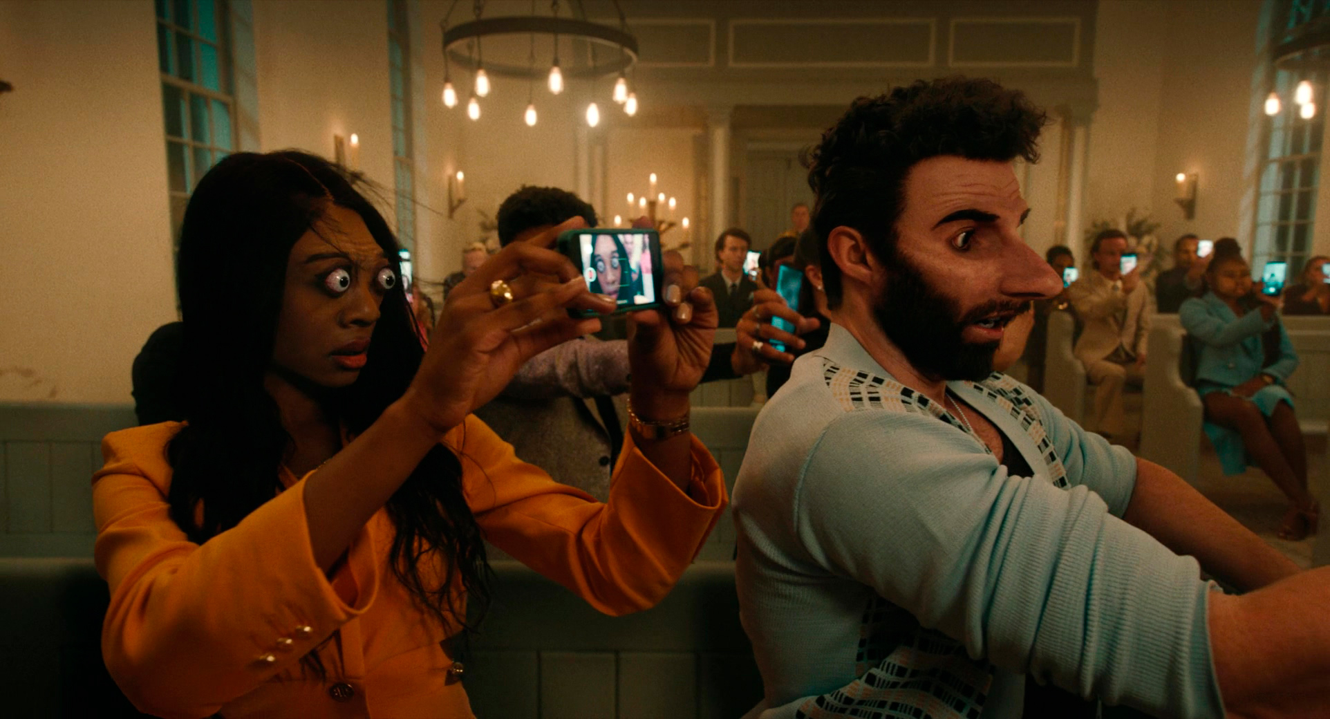 И тут как раз на контрасте Кэтрин О’Хара в роли неистовой Делии - отличная, причем она тут еще эффектнее, чем в первом фильме. И мы с Бубликом рады, что ее художественные притязания нашли отклик у взыскательной публики: та жуткая хрень, которой занимается Делия, вполне успешно проходит под эгидой "современное искусство".