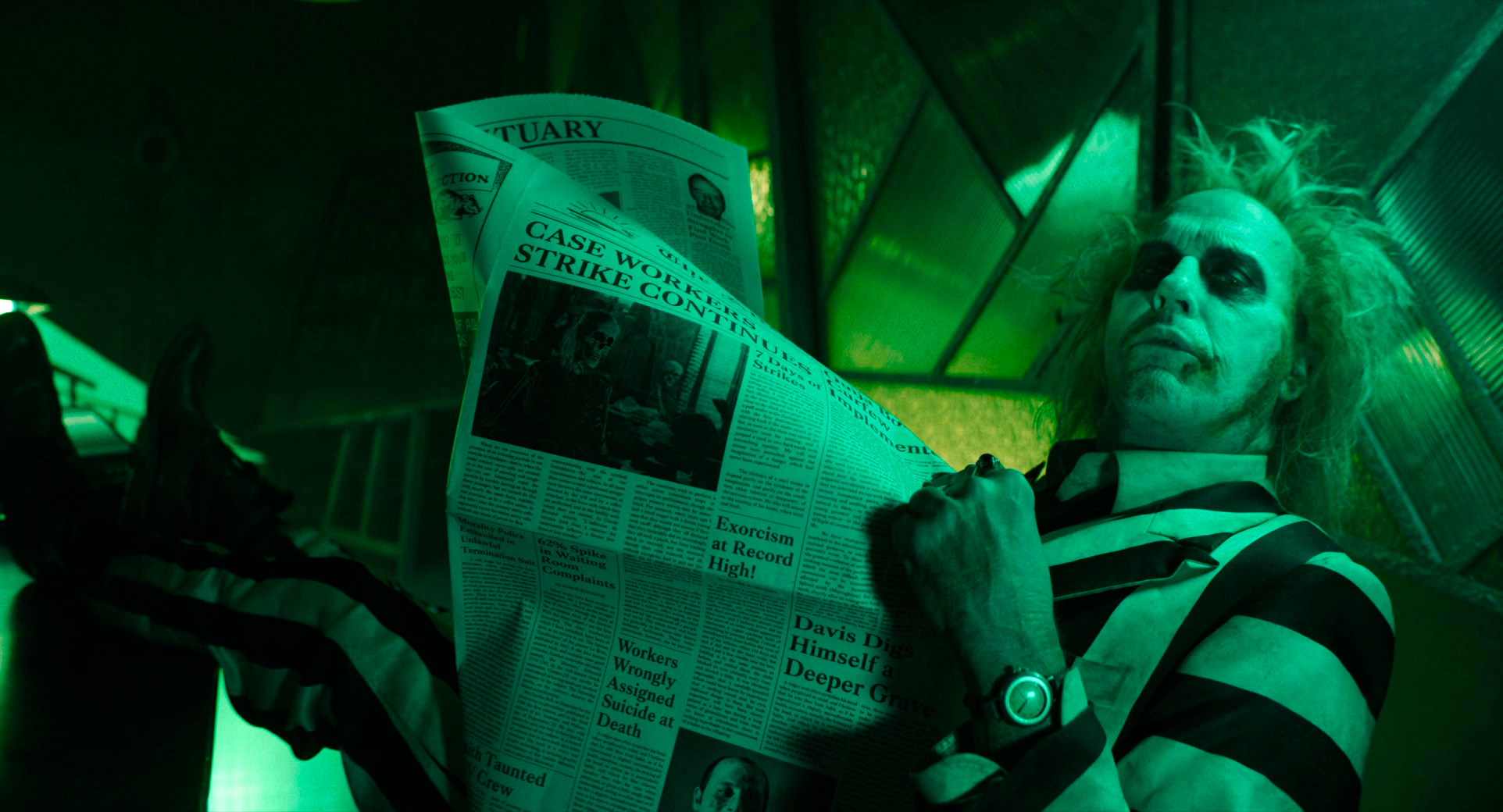 Впрочем, с самим Битлджюсом никакой неразберихи нет: он по-прежнему отпускает сальные шуточки, по-прежнему невероятно обаятелен, и он, как и раньше, часть той силы, которая вечно желает зла, но вечно делает добро. Он и раньше такой был, так что ничего не изменилось.