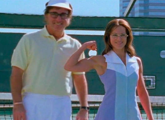 (Кстати, реальная Мэрилин Барнетт, насколько я знаю, после окончания их отношений с Билли Джин Кинг с ней судилась и отсудила некислую компенсацию. Подробности я не знаю, просто сам факт.)