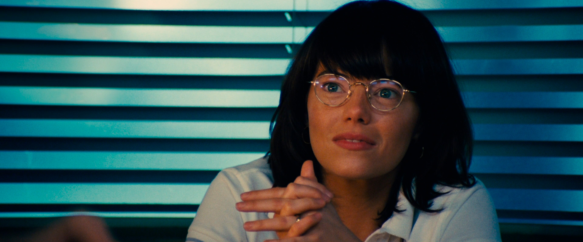 Эмма Стоун в роли Билли Джин мне не понравилась. Ну да, гримеры постарались вовсю, но, кроме грима, я тут мало что увидел. На мой взгляд, персонаж у нее получился какой-то слегка картонный, хотя она вообще актриса хорошая. Но тут со сценарием проблемы: на мой взгляд, ее не смогли раскрыть чисто сценарно. В отличие, кстати, от персонажа Стива Карелла, который тут значительно более живой и фактурный.