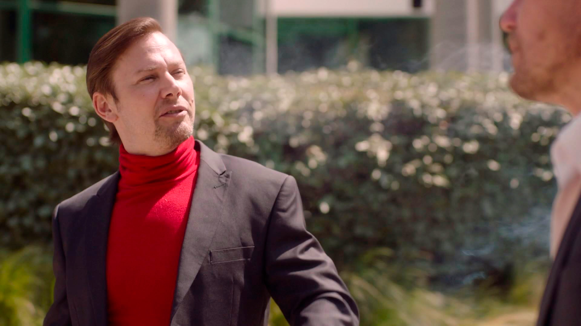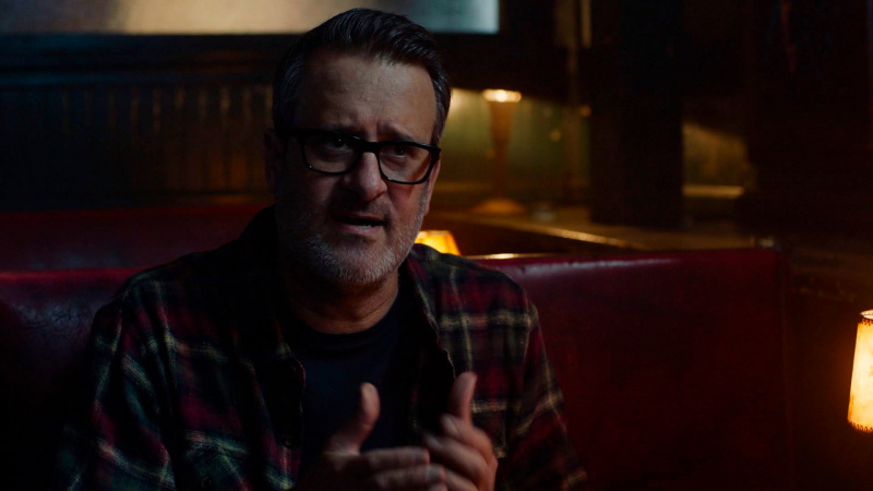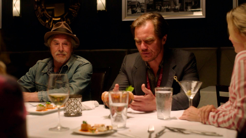 Кстати, вспоминая о первом "Достать ножи" - там сыграли и Майкл Шеннон и Дон Джонсон, который здесь выступил в очень забавной роли профессора Ти Вассермана: тоже чудаковатого, тоже спивающегося писателя и поэта, который передвигается верхом на лошади. Вассерман пытался найти общий язык со Шрайвером, однако их объединяет только любовь к алкоголю, а вот страсть Вассермана к отвязным вечеринкам Шрайвер вот прям совсем не разделяет. Дон Джонсон хорошо оттягивался в этой роли, очень понравился.