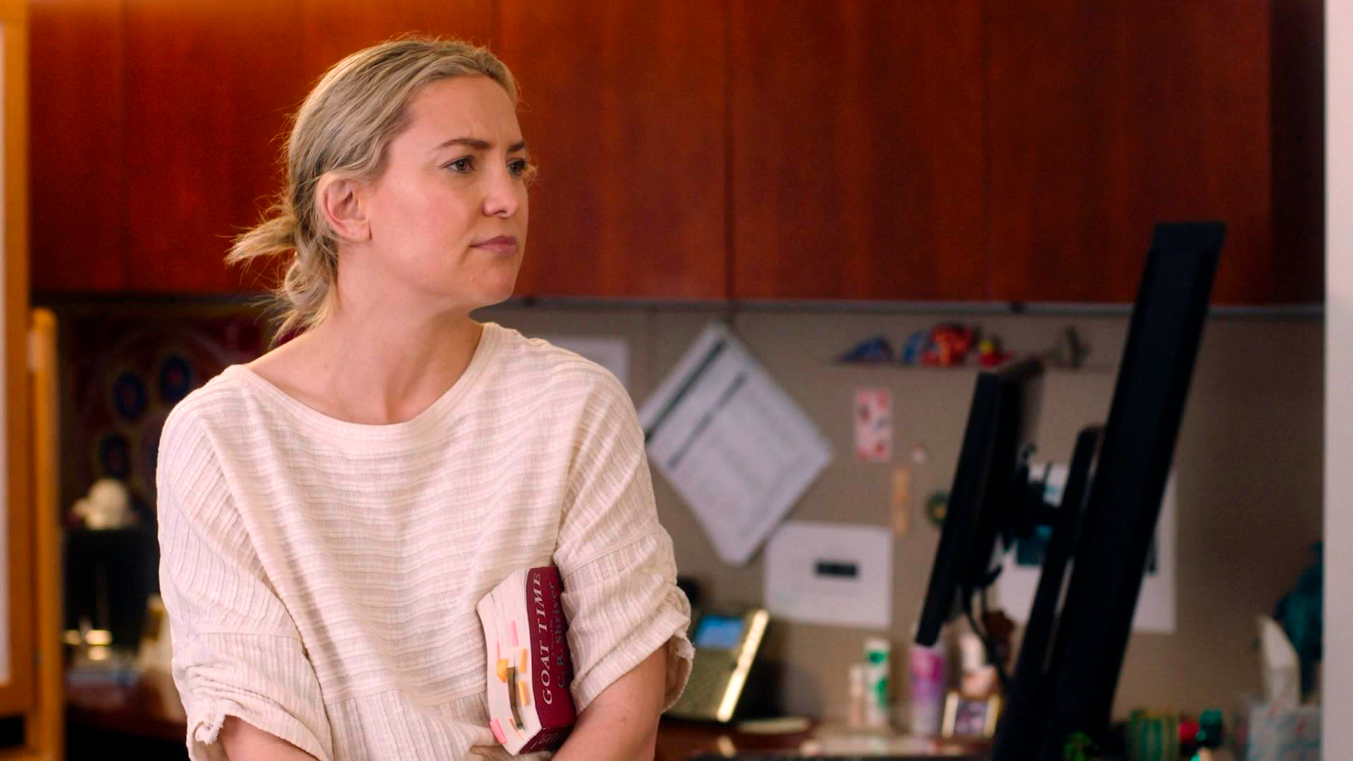 Кейт Хадсон в роли Симоны - неплохо, но ей там просто нечего было играть, потому что не ее персонаж. Ну никак она не выглядела на преподавательницу в каком-то там заштатном университете. Вот в "Достать ножи: Стеклянная луковица" она была во всем блеске, прям совсем ее персонаж. А здесь - просто мискастинг, в чем, конечно же, вины самой Кейт нет ни на грамм: она сделала все, что смогла.