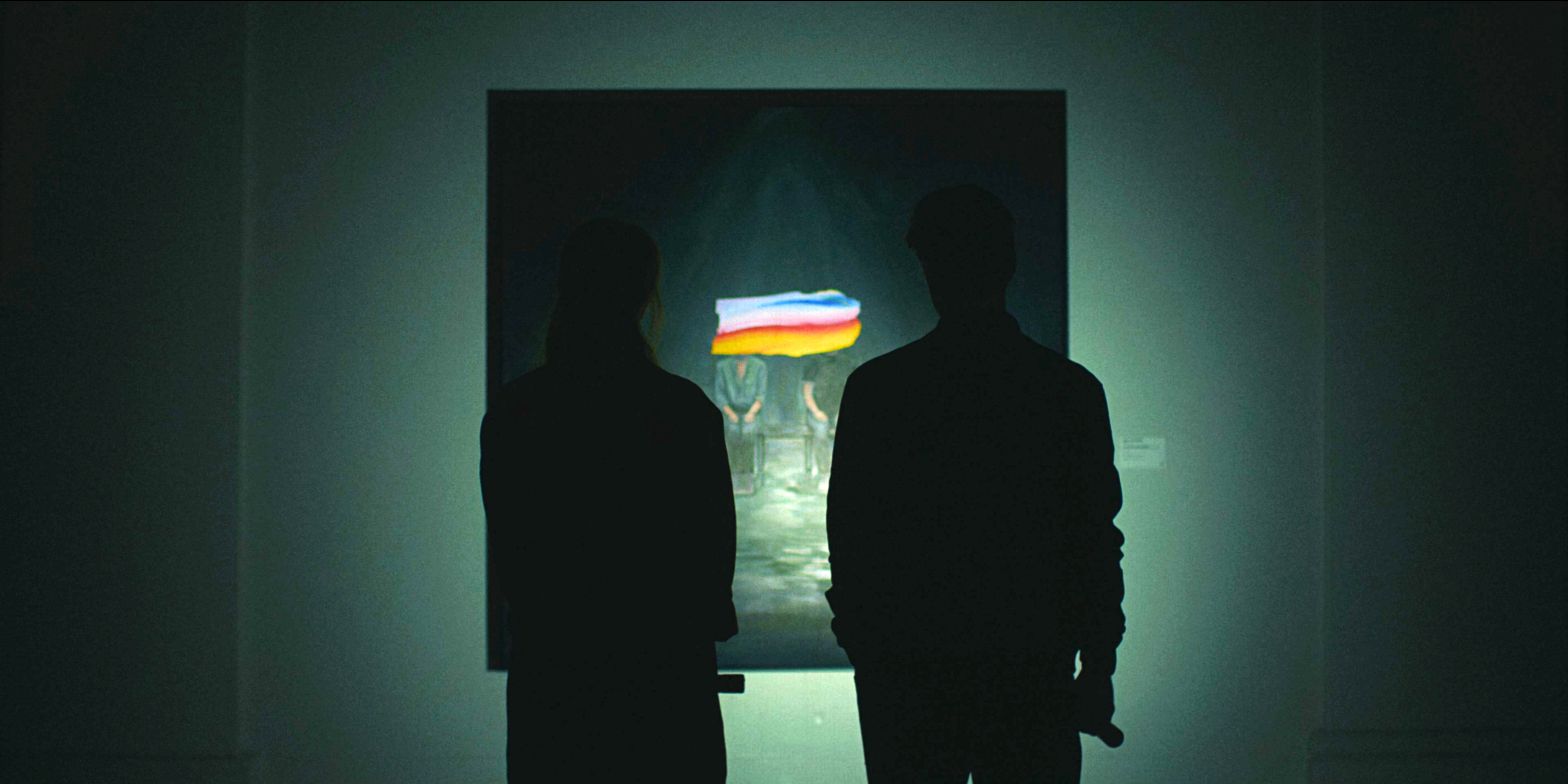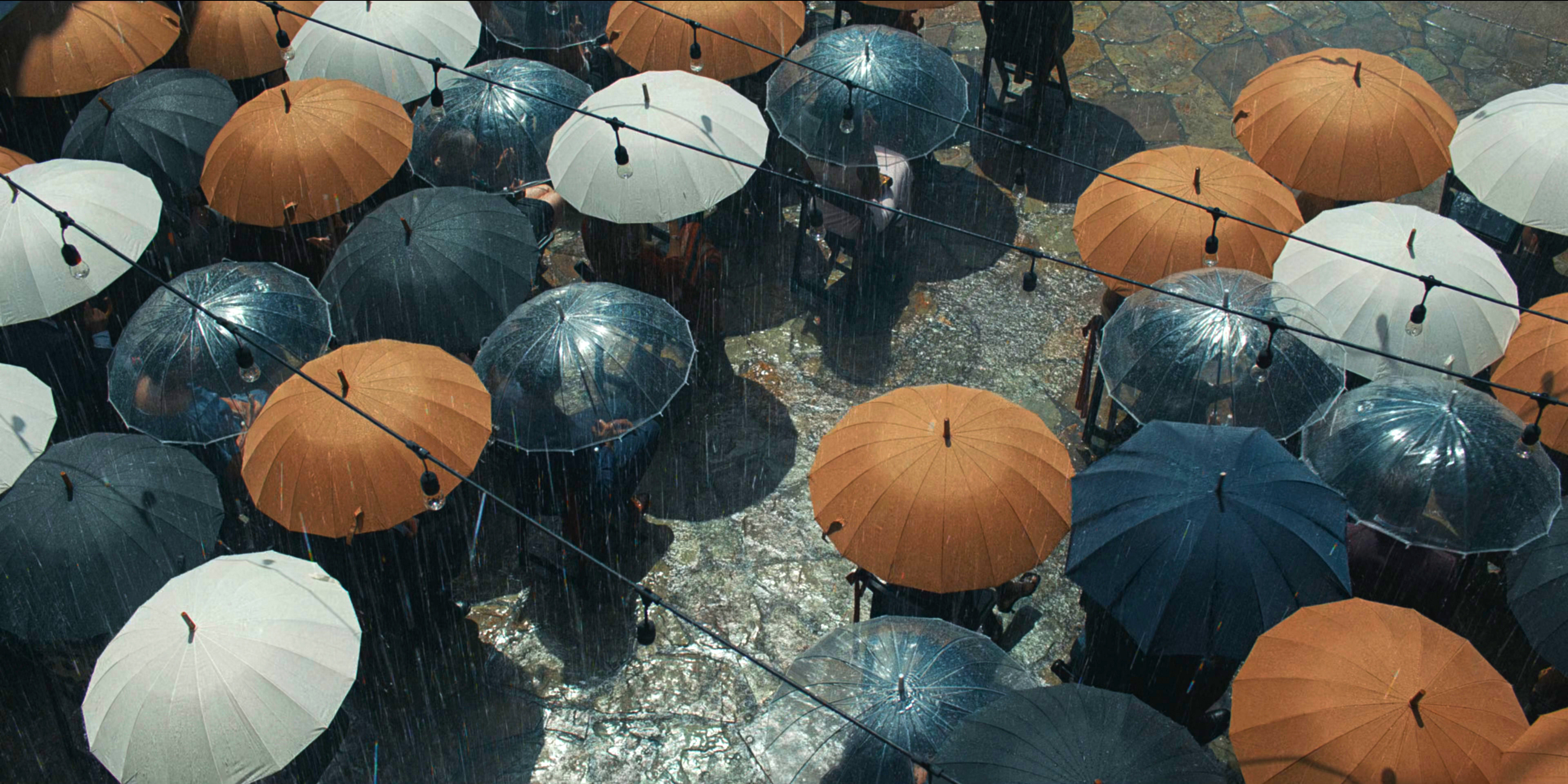 Так что все тут какое-то плоское и двумерное. Но - красивое, да, этого не отнять. Интересные цветовые решения, разнообразные постановочные решения - то фактически мюзикл, то абсолютно пустая сцена как бы иммерсивного театра, многочисленные отсылки к Хаяо Миядзаки - ярко-желтые и красные зонты, одинокая дверь посреди густого леса, - это сделано хорошо. Плюс это еще сопровождается музыкой композитора Дзе Хисаиси, который писал музыку к большинству анимаций Миядзаки.