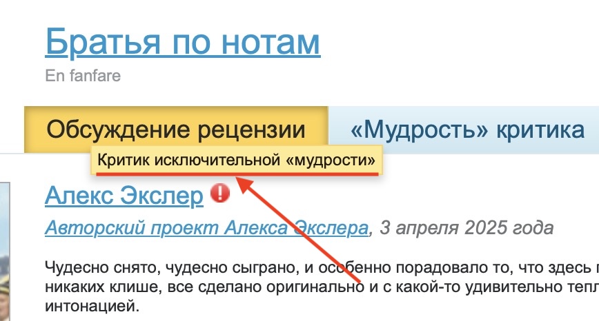 Вообще, Алекс, спасибо, конечно, больше за подсказку о фильме. Обязательно в ближайшее время постараюсь посмотреть.