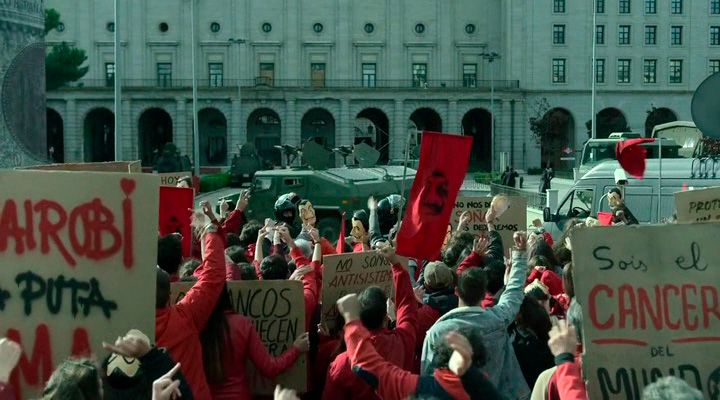 И тут уже идет противостояние далеко не только с полицией, но и с армией, причем для укрощения окопавшейся в Банке Испании группы был призван полковник Ромира, командующий группой конкретных отморозков, которых обычно отправляли делать самую грязную работу.