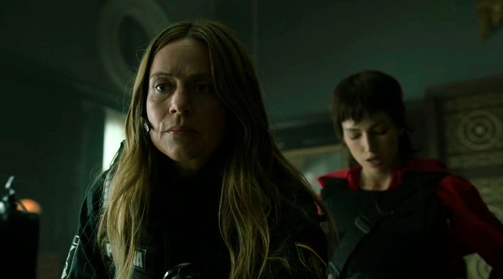 Третий сезон собрали по лекалам первой истории. В оригинале было ограбление Монетного двора - в продолжении затеяли ограбление Банка Испании, где хранится золотой запас страны. (Его планируется расплавить и каким-то образом вывезти.) На черта? С этим вообще морочиться не стали: инфернальная полицейская "главная сука среди всех сук" Алисия Сиерра (Найва Нимри) захватила красавчика Рио (по его же собственной глупости), ну и, значит, после этого вся бригада захватила банк, чтобы им вернули Рио.