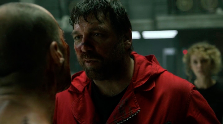 С флешбэками тут все хорошо. Так как в реальности пятого сезона идут сплошные ожесточенные столкновения, флешбэки резко меняют настрой сериала, когда зрители от адреналина кровопролитных сражений переходят к истории любви Токио или к очередным флешбэкам из прежней жизни Берлина, причем здесь с Берлином все значительно лучше, чем в третьем-четвертом сезонах, и зрителям даже показывают одну из интереснейших авантюр-ограблений Берлина, причем этот флешбэк был очень эффектно поставлен и на него явно пошло немало денег.